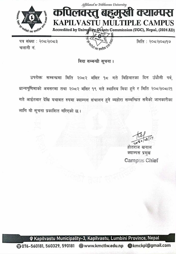 विदा सम्बन्धी सूचना …